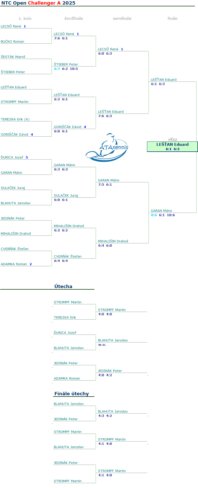 Challenger A ovládol Eduard Lešťan nad Máriom Garanom. Pred bránami finále skončil Lecső a Mihališin. Útechu vyhral nováčik Martin Strompf.