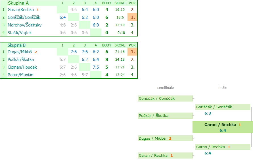 V kategórii Challenger bol najlepší pár Garan/Rechka, keď vo finále porazili Goriščákovcov.