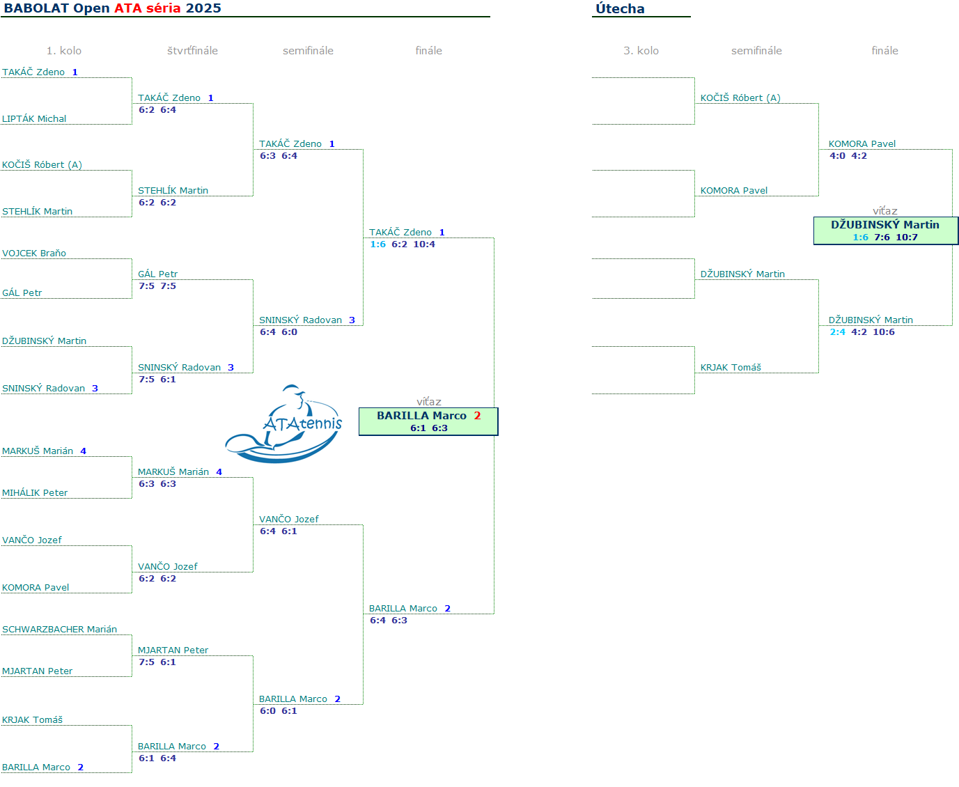 ATA kategóriu vyhral domáci Marco Barilla nad Zdenom Takáčom a vystriedal ho v pozícii jednotky rebríčka. Semifinalisti boli Sninský s Vančom. Útechu ukoristil domáci Džubinský.