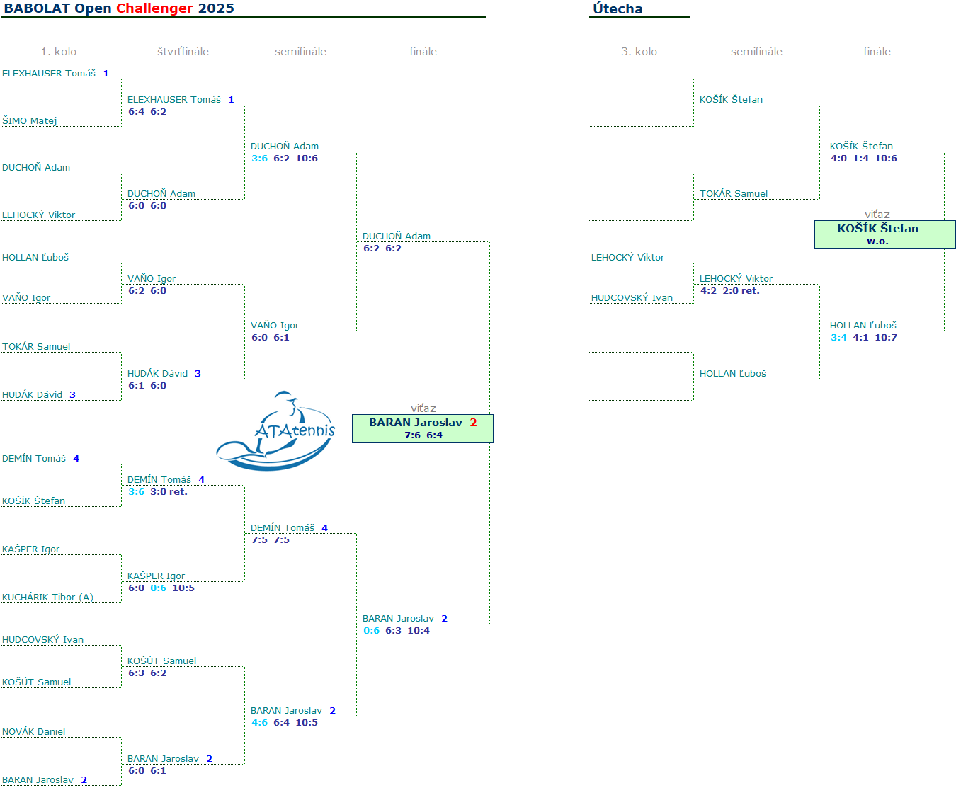 Challenger ovládol Jaroslav Baran, keď vo finále zdolal domáce prekvapenie Adama Duchoňa. Pred bránami finále skončil Vaňo s Demínom. Útechu vyhral domáci veterán Košík.