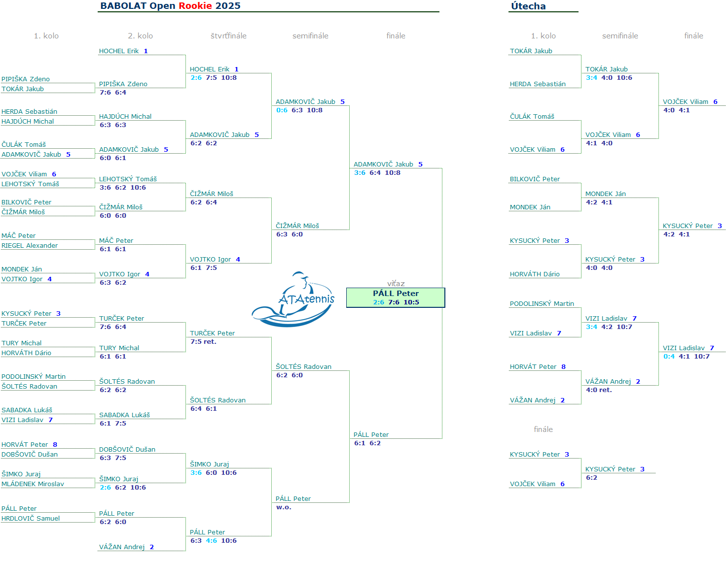 Rookie vyhral Páll Peter nad Jakubom Adamkovičom v stb. Bronzoví bol Šoltés s Čižmárom. Útecha sa nedohrala.